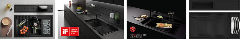 A tetszetős mosogatótálcához a konyhai munka kényelméért válasszon hozzáillő, egymással tökéletesen összehangolt csaptelepet, valamint csaphely furatba illeszthető mosogatószer-adagolót.