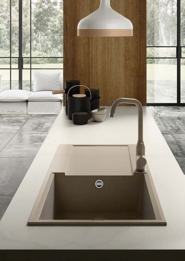 METALTEK kivitel - a termék elsődleges különlegességét a masszához hozzáadott fém részecskék adják, melyek a külső felületet csillogóvá és fényessé varázsolják. A cél egy különleges metál effekt elérése. A többszöri felületkezelés, különleges külső felület révén a mosogató a konyha más acél elemeihez is kiválóan illeszkedik.