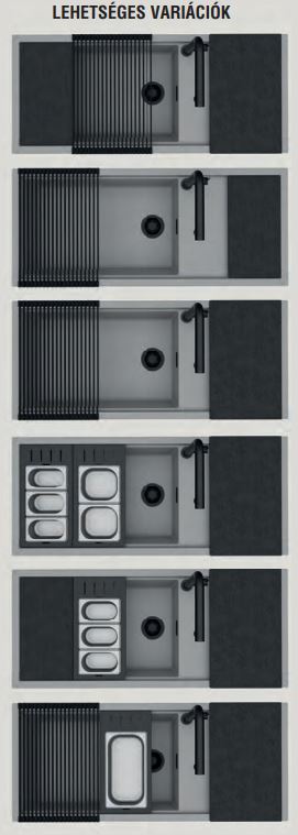 • Előnye a rendelkezésre álló felület funkcionális kibővítése és a mosogató környékének egyszerű tisztítása