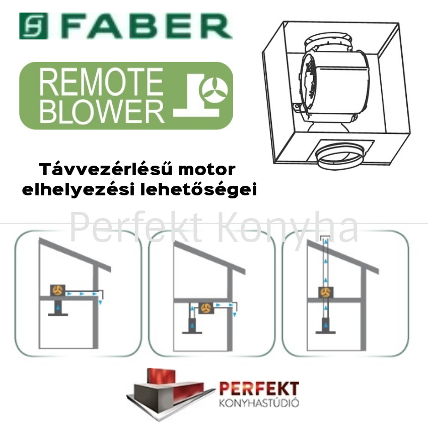 A Remote Blower - csendes FABER páraelszívó technológia által a távolabb beépíthető motor lehetősége nagyobb szabadságot nyújt a páraelszívó formatervezésében és a konyhai zaj csökkentésében.