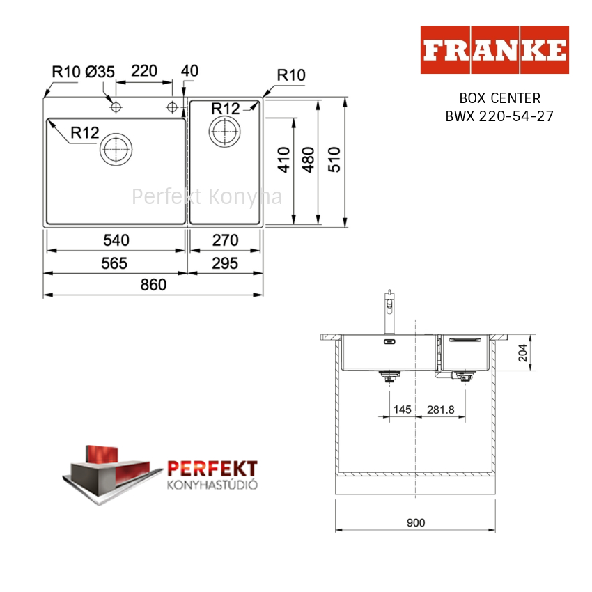 Franke Box Center – BWX 220-54-27 inox mosogatótálca 5 év gyártói garanciával