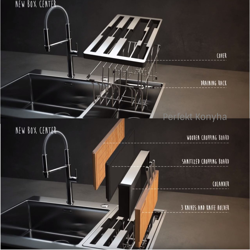 • teljes tartozék készlet – a különböző tartozékok gazdag kínálata lehetővé teszi a mosogatómedence maximális kihasználását a konyhai munka központi részévé változtatva azt.