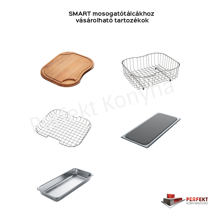 A tetszetős mosogatótálcához a konyhai munka kényelméért válasszon hozzáillő, egymással tökéletesen összehangolt csaptelepet, átüthető csaphely furatba illeszthető mosogatószer-adagolót, illetve a rendkívül ötletes hulladéktároló rendszer valamelyikét.