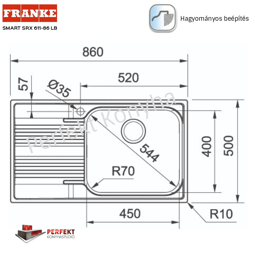 Franke Smart – SRX 611-86 LB inox mosogatótálca 2 év gyártói garanciával