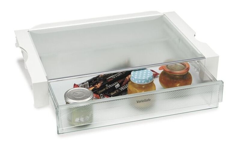 - VarioBox - segítség abban, hogy az apró dolgokat is könnyedén megtalálhatók legyenek a hűtőszekrényben: ezek a boxok gondoskodnak az áttekinthetőségről és a rendről. Mivel átlátszóak, azonnal látható, mi van bennük. A VarioBoxok könnyen kihúzhatók – az ütközőnek köszönhetően pedig egészen biztos, hogy nem a földön végzik.
