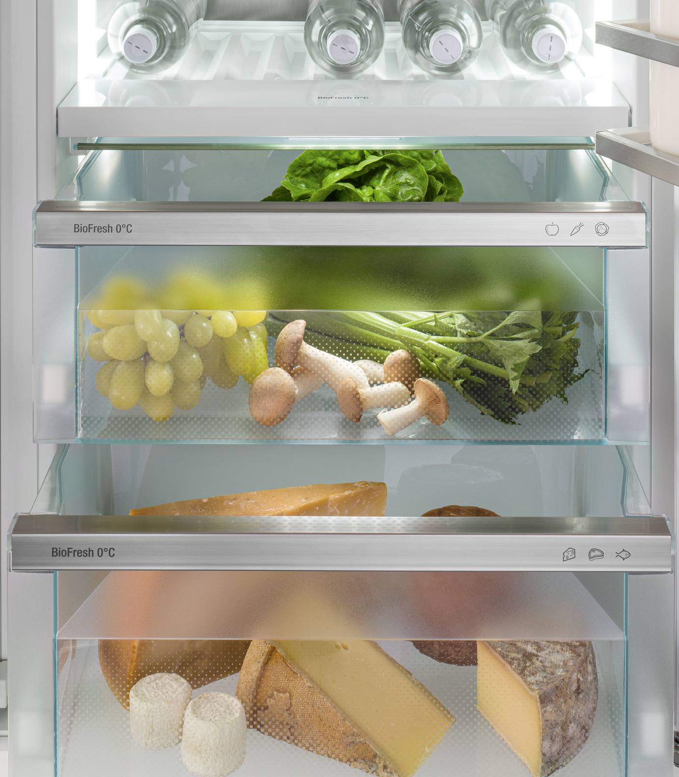 A Liebherr szabadalmaztatott BioFresh technológiája segítségével optimális hőmérsékleten, ideális páratartalom mellett tárolhatóak a vitaminokban és ásványi anyagokban gazdag élelmiszerek, így a gyümölcsök és zöldségek, húsok, halak és tejtermékek jóval hosszabban megőrzik frissességüket, mint egy hagyományos technológiájú hűtőszekrényben.