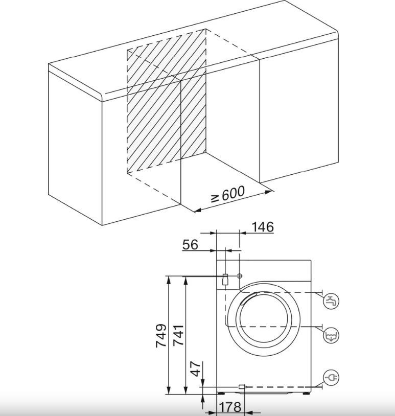 Készülék mélysége ajtó nélkül (aláépítéshez): 600 mm