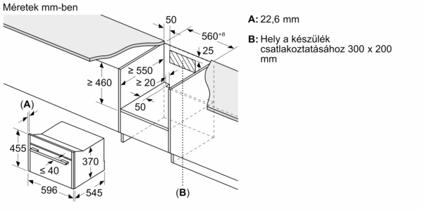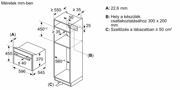 • Beépítési méretigény (ma x szé x mé): 450 mm - 450 mm x 560 mm - 560 mm x 550 mm