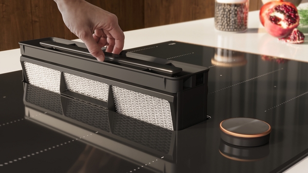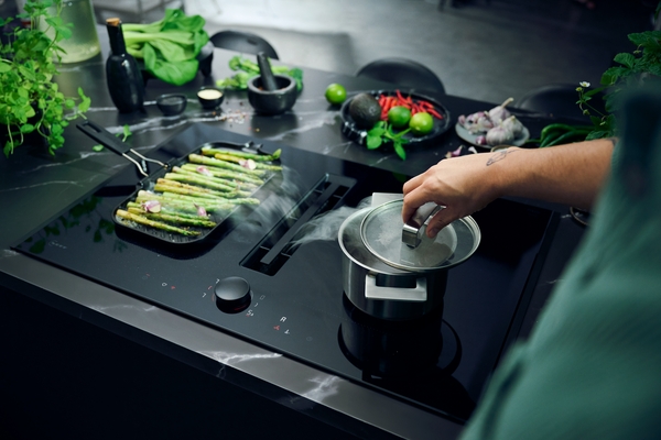 Az indukciós főzőlap a beépített elszívással két készüléket egyesít, hogy kényelmesebb legyen a főzés.
