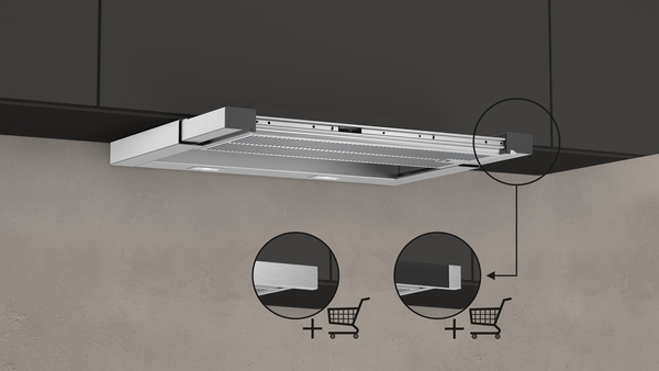 Teleszkópos elszívó: a letisztult konyhák rajongói szeretik a teleszkópos elszívókat, mert láthatatlan a felső szekrényben.