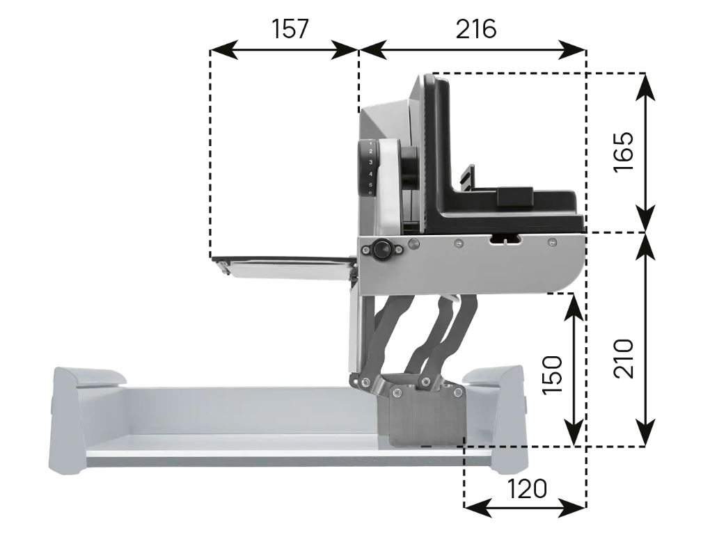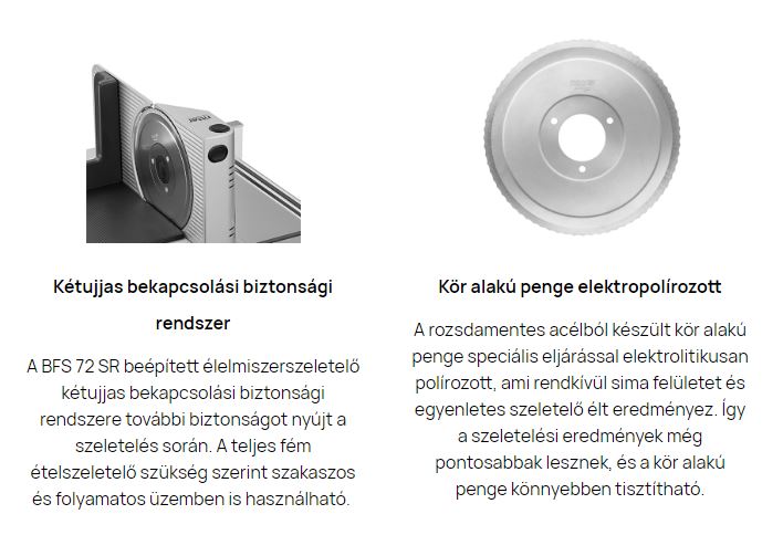 Az AES 72 SR beépített ételszeletelő a lehető legnagyobb stabilitást és a legjobb vágási eredményt garantálja kiváló minőségű, teljes fémszerkezetének köszönhetően.