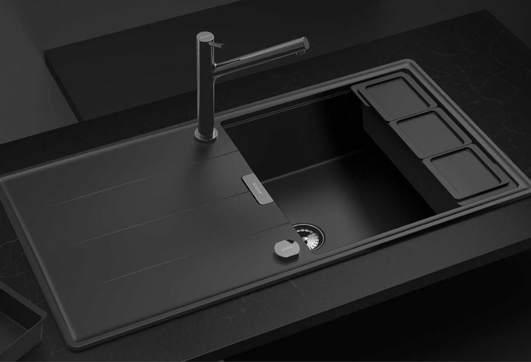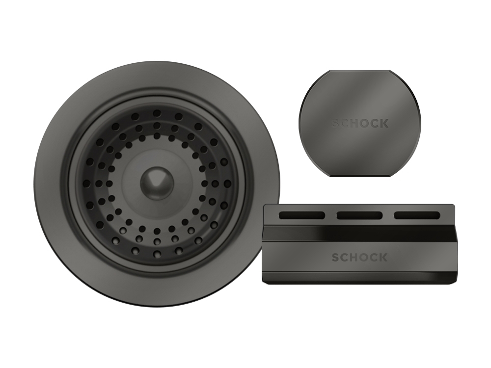 A tökéletes végeredmény elérése érdekében a SCHOCK felajánlja ügyfeleinek, hogy a mosogató és a csaptelep egyetlen egységet hozzanak létre az azonos anyagból készült szűrőkosár, távműködtető gomb és túlfolyó takarónak köszönhetően.