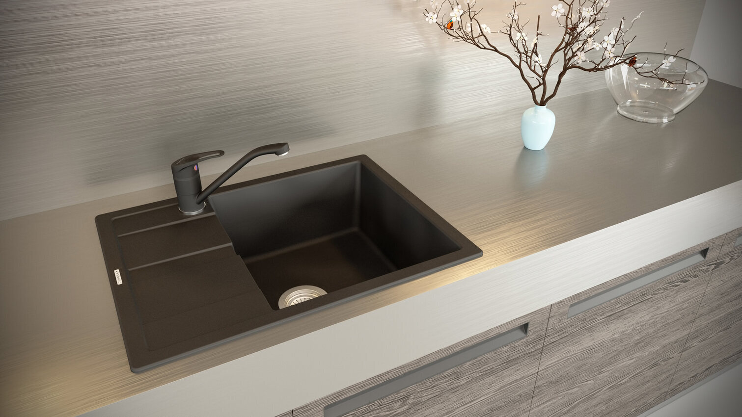 Croma/szürke színben - a króm kifinomult és elegáns anyaga inspirálta, a CRISTALITE® mosogatótálcák innovatív színvilágának képviselője. Lágy, világos szürke, amellyel a tervezők azt a meleg színt szerették volna elérni, amely megőrzi finomságát, de távolságot tart a szürkétől, hogy tökéletesen illeszkedjen egy kortárs stílusban berendezett lakásba a városi élet szívében. A Croma színe kiválóan illik a gránit, a márvány és a rozsdamentes acél elemekhez.