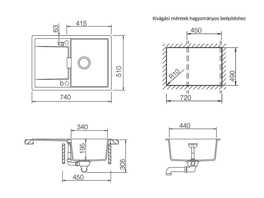 - Beépítése különösen gyors és egyszerű, hiszen a mosogatót egyszerűen csak az előre elkészített kivágásba kell felülről behelyezni, majd rögzíteni.