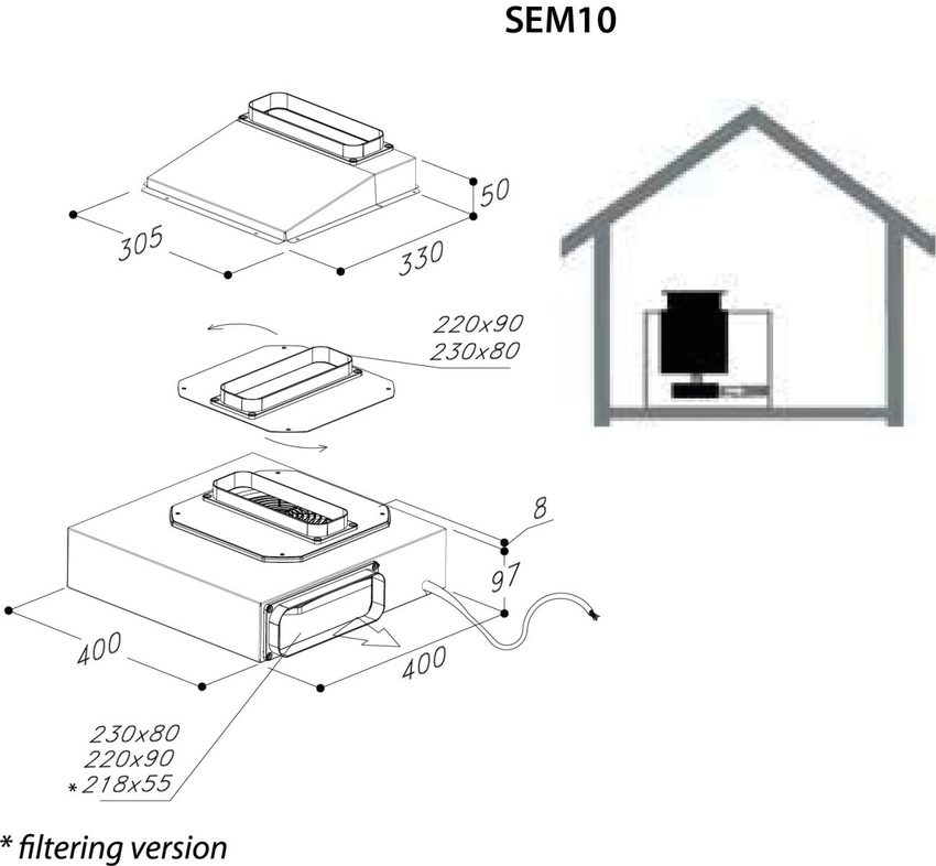 Külső motoros páraelszívó rendszer vásárlása esetén a páraelszívó ernyő a belső motort nem tartalmazza. A páraelszívó árához kell hozzáadni a kiválasztott külső motor árát.