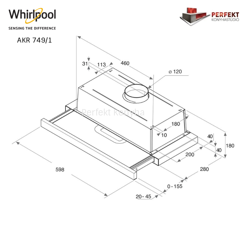 Whirlpool AKR 749/1 felső szekrénybe építhető páraelszívó 2 év magyar garanciával
